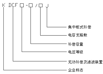 舉例說明:KDCF6-1000/3J 表明設備是標準柜式安裝補償裝置,總補償量1000kvar,補償支路3路。