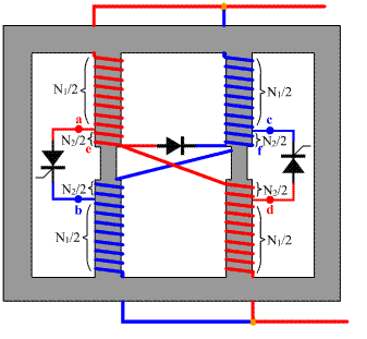 MCR的結構如圖所示,其工作原理為,通過調整晶閘管的導通角,使控制繞組N2產生不同的直流勵磁電流,從而改變磁閥(圖中鐵心截面積較小處)的磁飽和強度,導致電抗器的磁阻變化,使電抗器的電抗值得到調整,從而改變其容量。