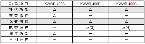 裝置具備上電保護、掉電保護、過壓保護、欠壓保護、欠流保護、過流保護等多種保護功能;裝置還提供針對補償裝置總進線的兩相兩段式電流保護、不平衡電壓保護、零序電流保護,此功能限于A、B型裝置。