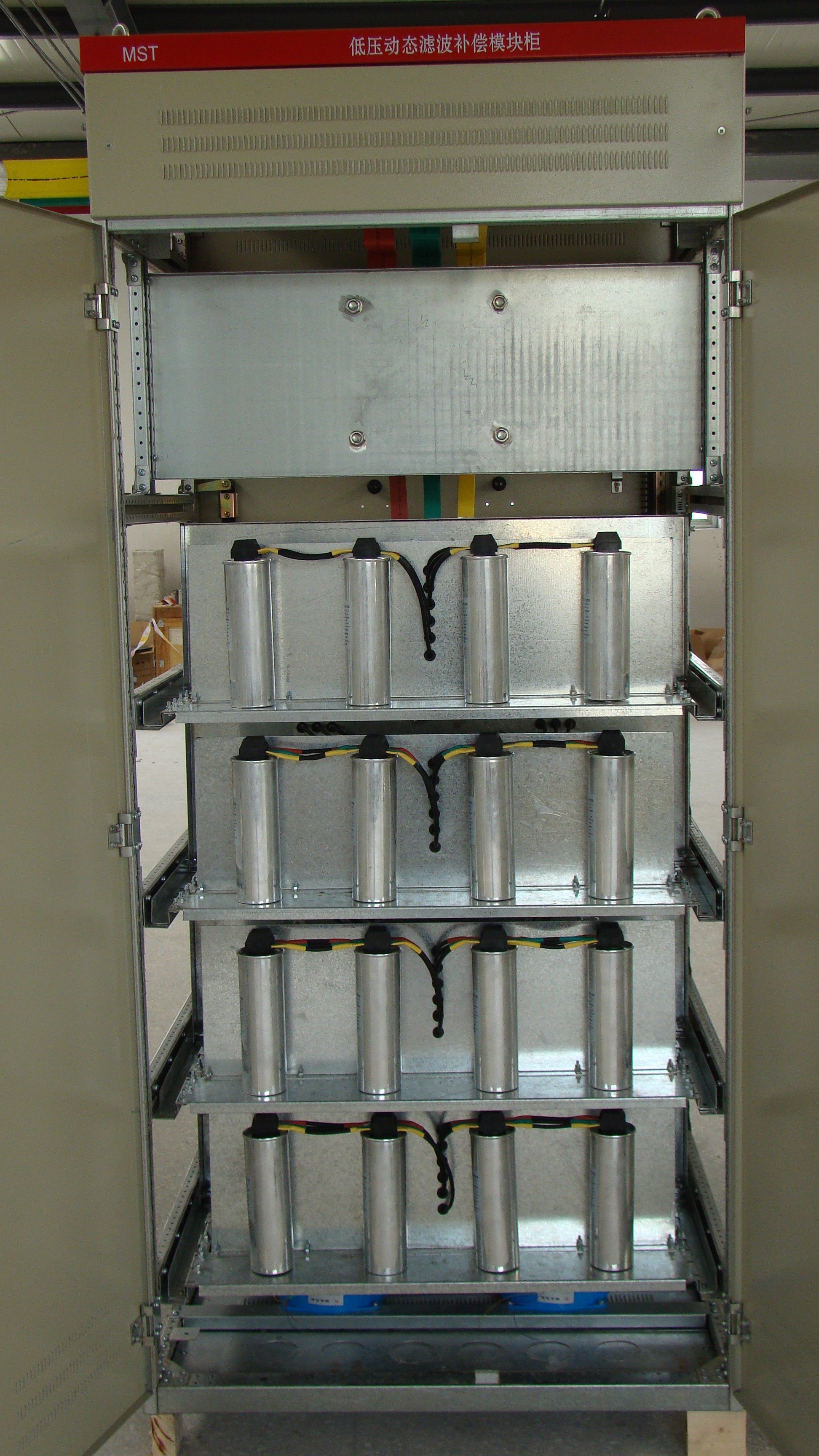 每套模塊式裝置由一臺(tái)柜體、一臺(tái)控制單元和幾只濾波補(bǔ)償模塊組裝而成,濾波補(bǔ)償模塊可根據(jù)選型表選擇
